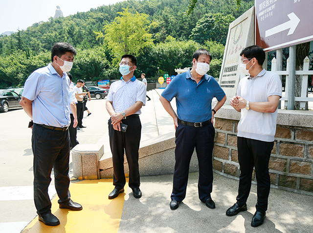 8月8日上午,荣成市委书记包希安一行到NG娱乐景区督导防疫工作,集团公司王玉春董事长等在现场接待。