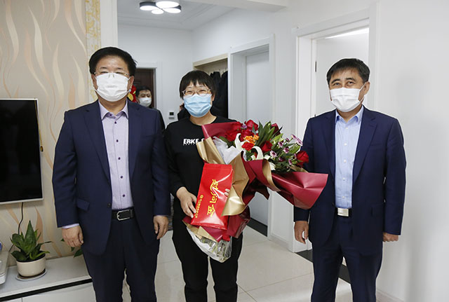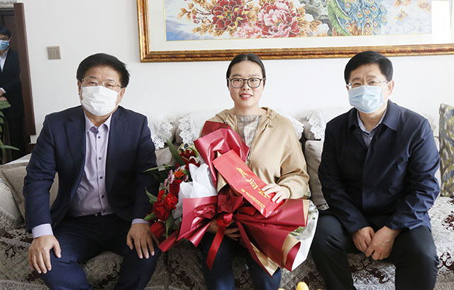 在荣成市人民医院院长郭光远、荣成市中医院党委书记房建壮的陪同下,王善强常务副总经理分别来到了两名援鄂英雄家中,分别为她们送上了鲜花和慰问金,对她们不畏艰险,勇于担当,救死扶伤,冲锋在前的英勇精神表示钦佩。