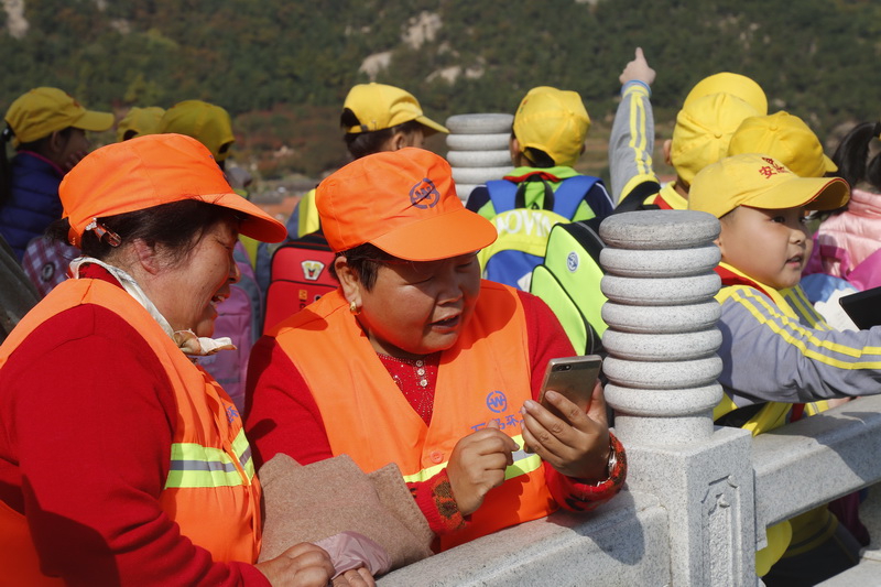 站在NG娱乐明神基座上,面对着山下曾经工作的地方,他们感到新鲜又陌生:“看,那是咱们的岗亭”,“那地方是俺家”……在山下终日劳动,这群“马路天使”对家乡的一草一木再也熟悉不过,从另一个角度看家乡,他们还是觉得挺好奇。“ 一位环卫大妈拿出手机,和在家中的孙子视频聊天:“奶奶现在在NG娱乐明神和你说话呢,你能不能看见奶奶?”,他们把欢乐留在手机中,传送给远方的亲人。