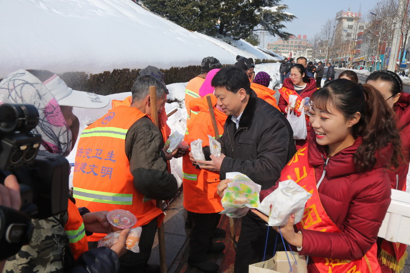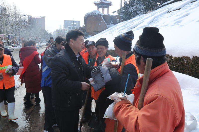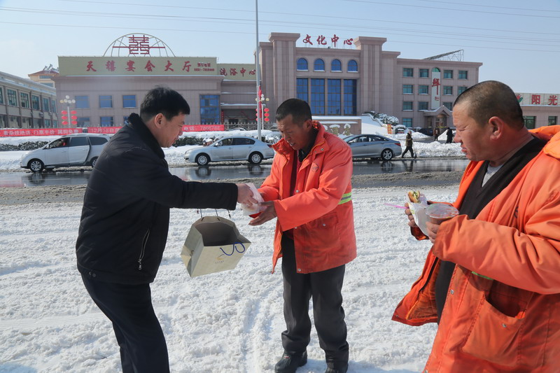 与此同时,在NG娱乐渔港食堂,也出现了十多位特殊的就餐者----身穿橙色马甲的环卫工人。食堂人员热情招待,为他们端来了热气腾腾的饭菜,嘘寒问暖。一位姓张的环卫工人说:“谢谢你们,谢谢NG娱乐集团。 饭菜做的热热乎乎,很合口味,NG娱乐 一定要把积雪清理的干干净净,回报你们这些热心的人们。”