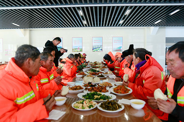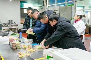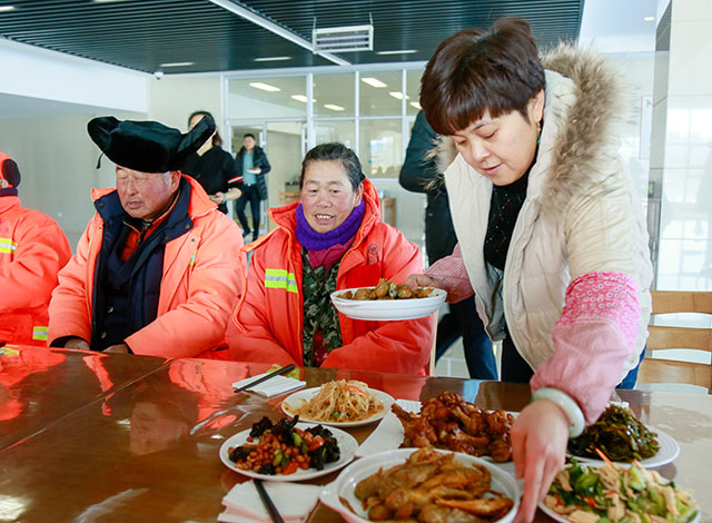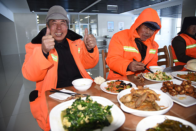 “饭菜非常丰盛可口,吃完了不仅身上暖和,心里面更暖烘烘。”一名环卫工人激动不已,并为企业的这份爱心竖起了大拇指。