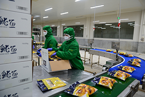 公司占地面积十六万平方米,建筑面积十万平方米,固定资产6亿元,现有员工1000余人,加工基地厂区占地面积20万平方米,拥有四个现代化的大型精深加工无菌车间,最新型单冻机六台,平板速冻机十二台,预炸设备,意大利全自动式鱿鱼去皮机四台,8万吨的立体化冷冻储存库,年加工海洋食品总量达8万吨。