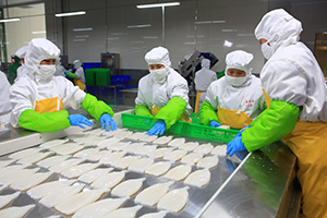 我公司主要有三大特色:第一,生产规模大。公司拥有20万吨冷链物流库,鱿鱼系列产品年加工能力可达10万吨;第二,出口创汇高。公司的鱿鱼产品主要销往欧洲、美洲、澳洲、非洲等30多个国家和地区,2019年出口创汇1.2亿美元;第三,设备工艺先进。公司通过引进国际先进的意大利和西班牙鱿鱼自动化加工设备,并结合自主创新设计形成了全套流水线加工工艺,提升加工效率40%以上,其中多项技术工艺均属于自主研发;在制冷设备上全部采用二氧化碳制冷技术,从根本上解决了液氨制冷带来的安全隐患。