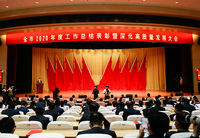 2月20日上午,荣成市 2020 年度工作总结表彰暨深化高质量发展大会在市新时代文明实践中心召开。集团公司王志方总经理作为全市两家重点企业代表之一在会上做表态发言,并上台接受颁奖。